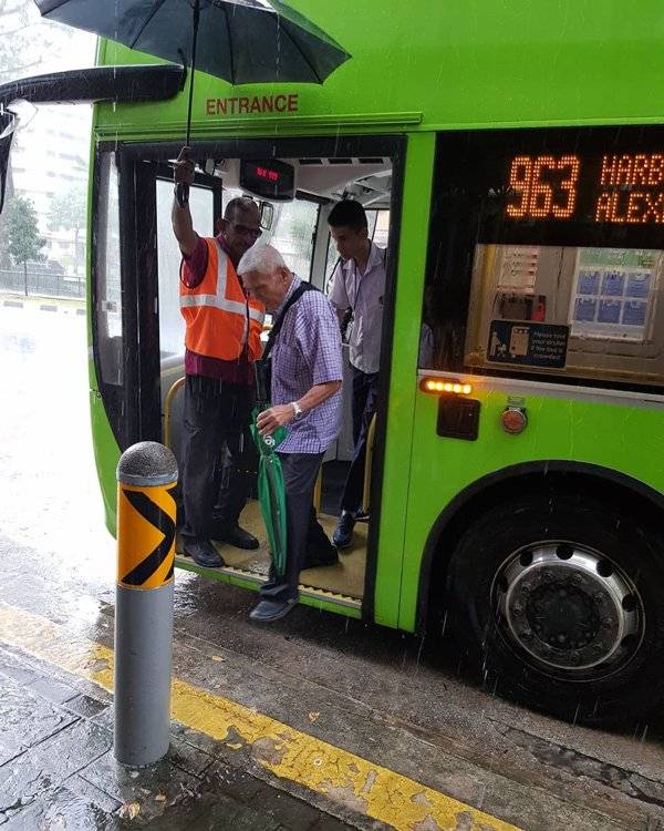 《联合晚报》报导,面子书流传着一段约1分22秒的视频,上载的网民写道,“SG5705E的这名巴士车长好棒,他在每一站都为乘客撑伞!”。