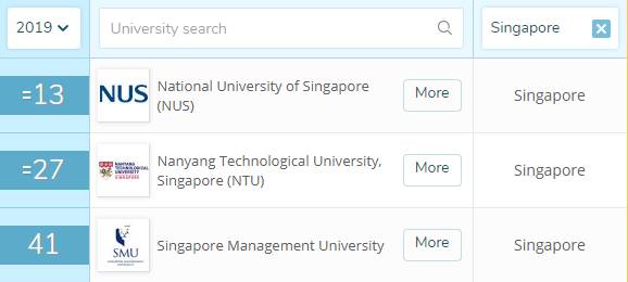 英国教育组织QS公布2019年世界大学排行榜,共有1200多所大学接受评估,新加坡的三所大学:新加坡国立大学、南洋理工大学和新加坡管理大学榜上有名。