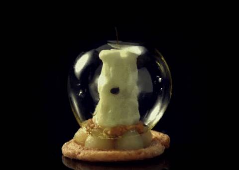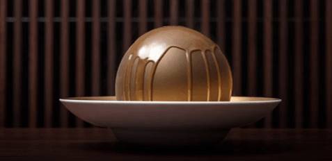 焦糖烤成的玻璃气泡外壳,罩住青苹果冰沙,搭配点缀巧克力“籽”的千层饼底,这颗”只应天上有“的神仙苹果,不只是一道简单的甜品,分明就是一个艺术品啊!