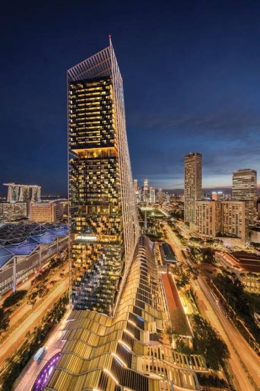 这是一个综合性发展项目,包括办公楼、设计型酒店、餐饮店面和会员制俱乐部。45层高的南楼底下21层楼是有654间客房的高级酒店,23至45层楼则是二到四房式的豪华公寓,其中包括六间顶层豪华公寓单位。至于34层楼高的北楼则是大约70万平方英尺的办公大楼。
