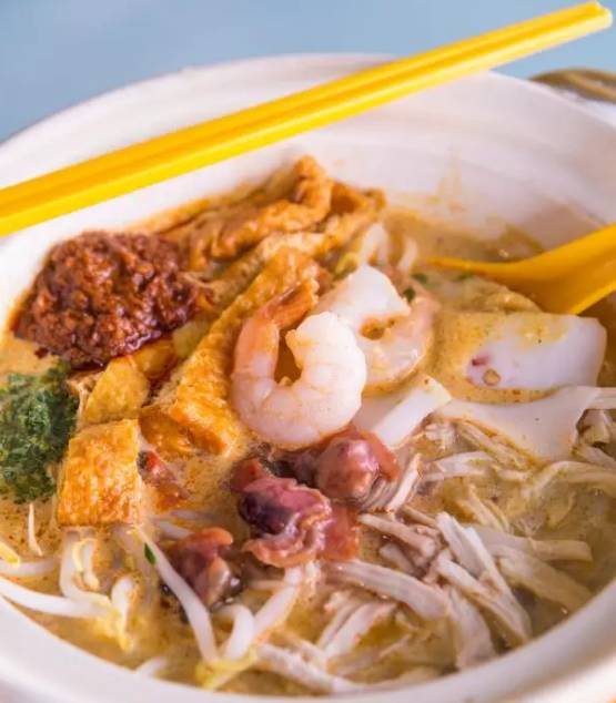 正宗的新加坡叻沙讲究椰浆的鲜味、鲜虾的甜味和自制辣椒油的辛辣味,汤头是以咖喱汤汁混合椰浆...