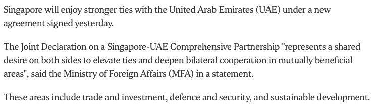 根据联合宣言,两国将在新加坡与海湾合作理事会签署的自由贸易协定下,深化经济合作关系。