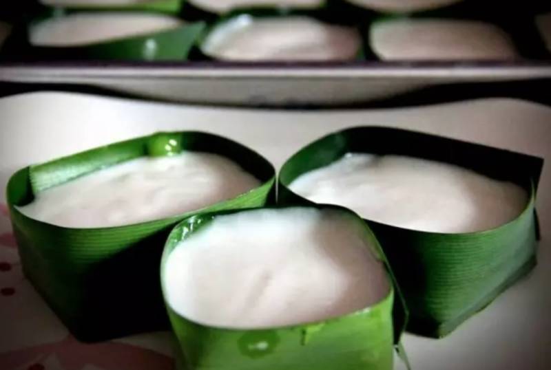 这是一款成功打入中国东南亚印象餐厅的甜品,在中国的菜单上,我们亲切的称它为“斑兰椰汁西米糕”。用了什么食材一清二楚的都用在了名字上,有的地方还会加入几粒甜玉蜀黍粒来增加口感。