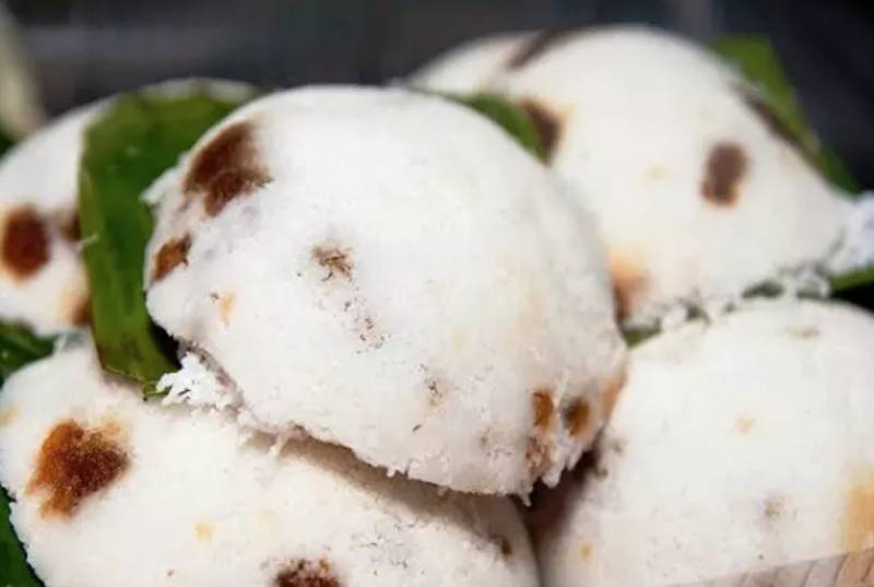 嘟嘟糕是一种类似蒸糕的小食,做法是先将米粉填在圆形模具上,置入椰子或花生馅料,再铺上一层米粉,然后以白纱布盖在模子上以保持湿气,在蒸屉里蒸熟后,将白嫩的嘟嘟糕放在班兰叶上就大功告成了。因为以前买嘟嘟糕的小贩会一边骑车一边发出嘟嘟的声音来告诉大家自己的到来,才慢慢得名嘟嘟糕。