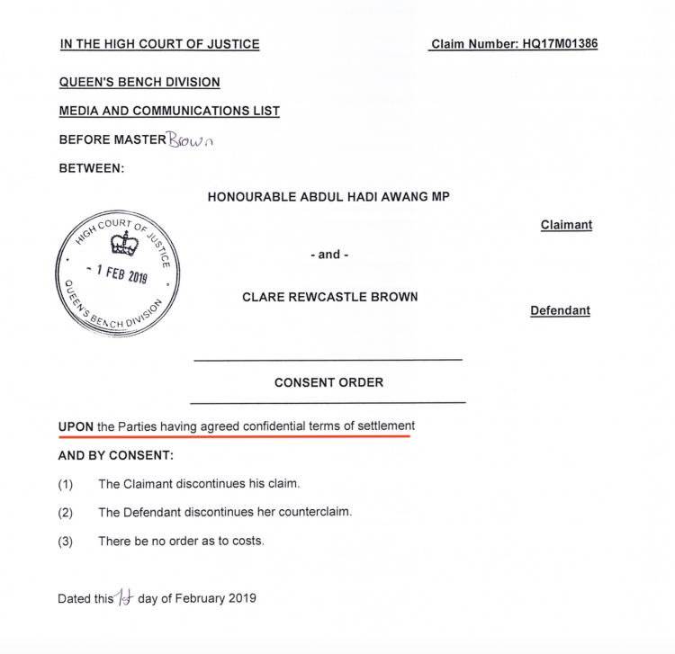 “‘砂拉越报告’同意哈迪阿旺要求双方就付款保密的条件;而这可以节省双方的诉讼时间和费用。”