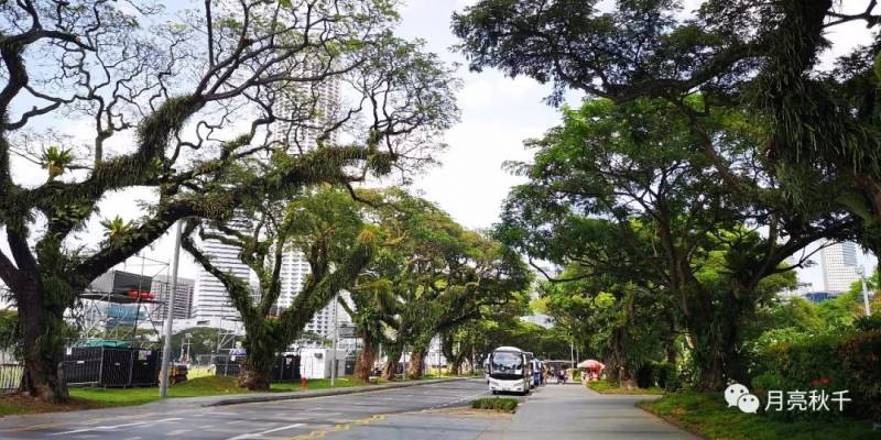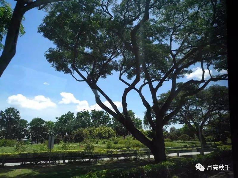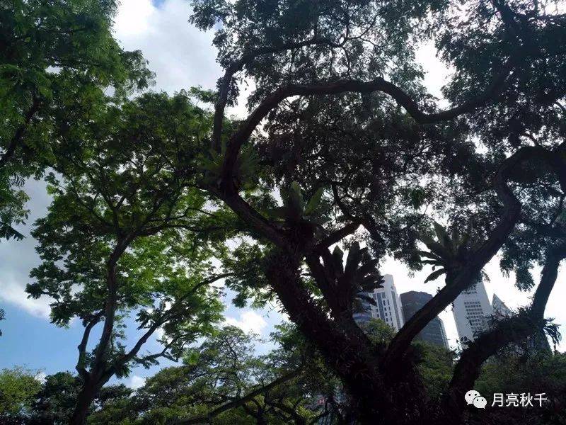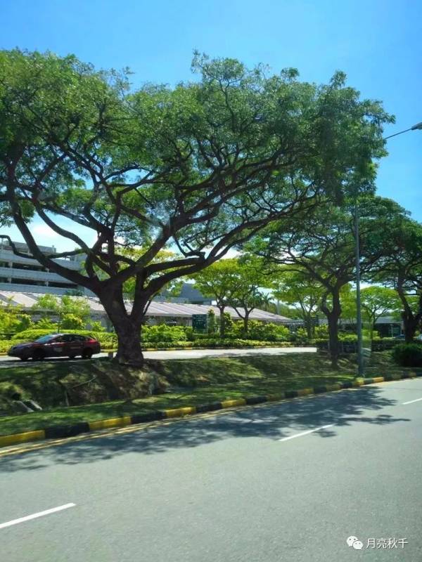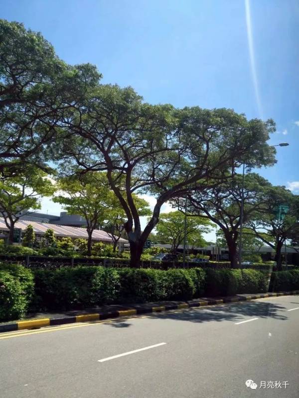 让新加坡如此舒适宜居,国宝雨树功不可没。一下飞机,道路两边几乎五十米就是一棵“rain tree”,像一棵棵撑开的巨大绿伞,树干粗壮高大,有的甚至两人才能合抱。如果凑近看它的叶子,你会发现,这不是寒羞草吗?可是这种树高约20多米,树冠呈平顶状伞形,扩张面积最大可达30米的寒羞草,我还是第一次见到。