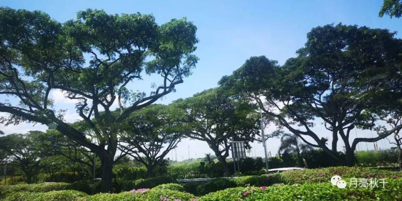 广告据说雨树是由巴西引进的,大概有六十多年历史了。长到一定高度后,它就横向发叉,不断增多枝干,树冠越来越大,直径有十几米,枝繁叶茂的华盖完全像一把张开的巨伞,既可遮阳,也可避雨。尤其是在东海岸公园,全是一些让人犹如置身原始森林的雨树。