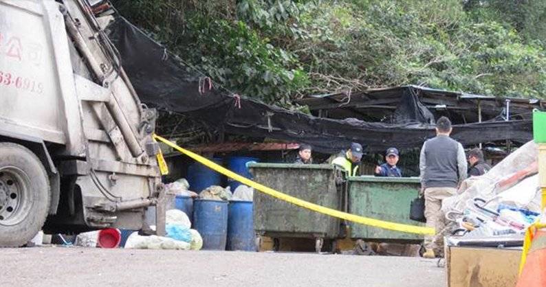 台湾警方派出多名警员在发现女婴的厨余分类现场展开调查。(互联网)