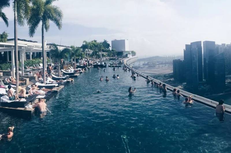 滨海湾金沙酒店的露天泳池,一眼望去的最大特点就是高(恐高莫入)。