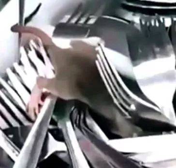 社交媒体近日流传一段5秒视频,拍到一家烧腊摊位的餐具盘出现一只老鼠,困在一堆叉子中,埋头找食物,视频在网上疯传,摊位地点也曝光。