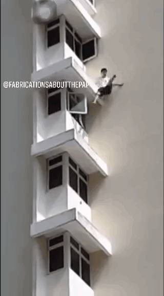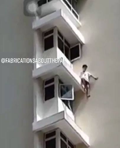 当时他的双脚已经悬空,随时都可能掉下去!窗台上方的窗户敞开着,这名少年或是从这个窗户失足跌落。