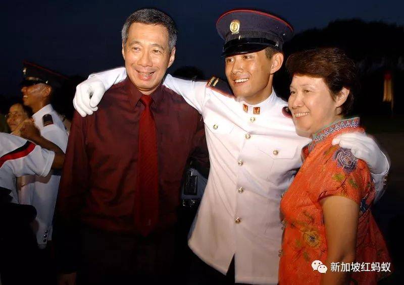 2006年,李显龙总理和夫人何晶在儿子李鸿毅的见习军官结业仪式上合影。(海峡时报)