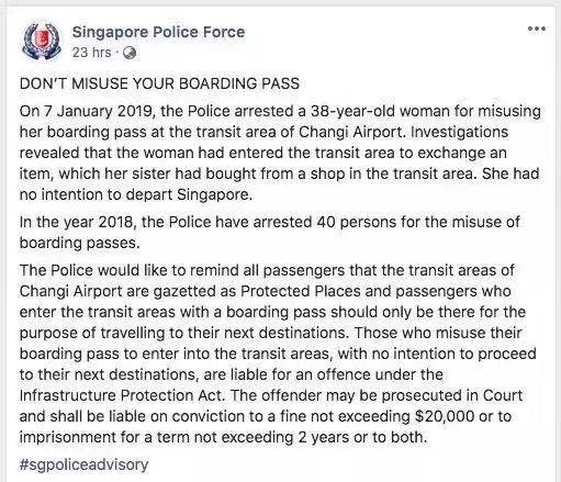 滥用登机牌进入樟宜机场过境区是要受罚的