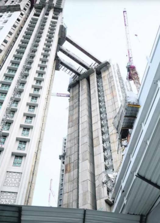 据悉,坠落的衔接桥大约一个月前就已安装在25楼,但不知何故突然坠落。