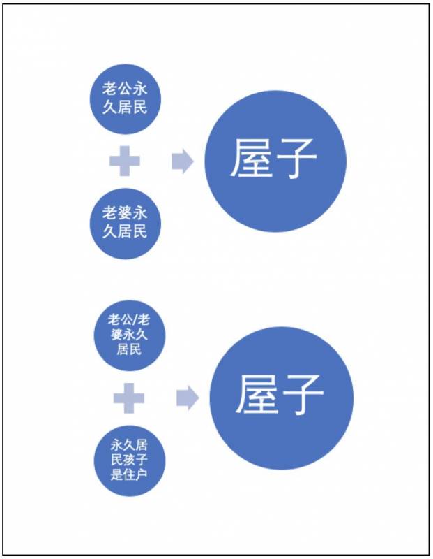 如夫妻、父女/子、母子/女,家庭所有成员,要有拿到永久居民(PR)3年或以上才可以购买政府组屋,且购买后,房屋只能用来居住,不能整间出租;转手售卖,需要住满五年才可以。