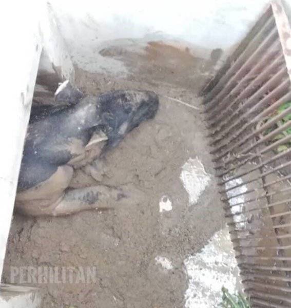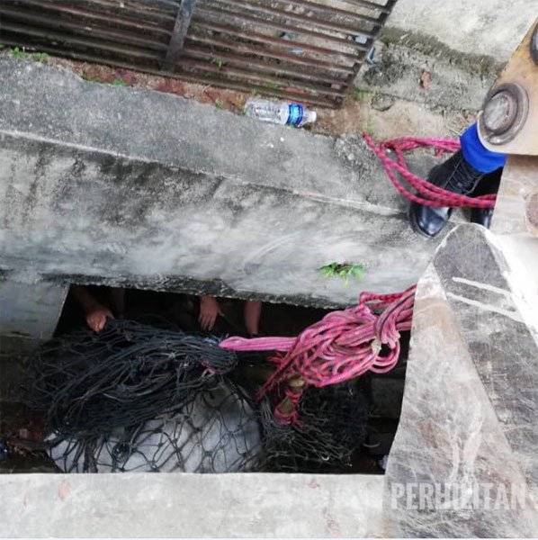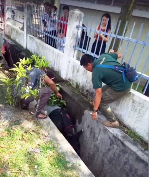大马半岛野生动物保护及国家公园局(PERHILITAN)官员今早接获通知后尝试捕捉它时,它因被追赶而过于害怕失足掉入水沟内。