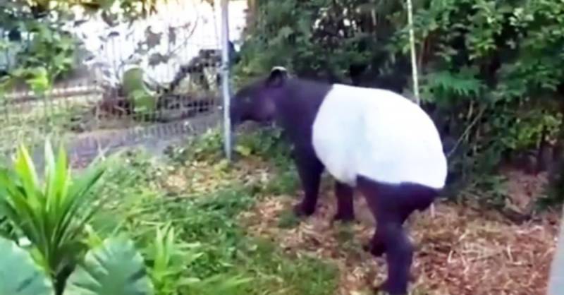 据面子书“Kota Kemuning Group”出现的一则1分钟39秒视频,当地居民在清晨发现该只马来貘,它一时逃跑,一时吃东西;它的敏捷反应,让骑着摩哆追赶它的居民,也无可奈何。