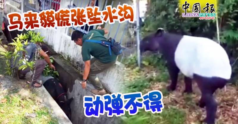 (巴生3日讯)莎阿南哥打哥文宁住宅区今日清晨出现一只马来貘,它因被人追赶而发慌地窜逃,最终失足掉入水沟内,动弹不得。