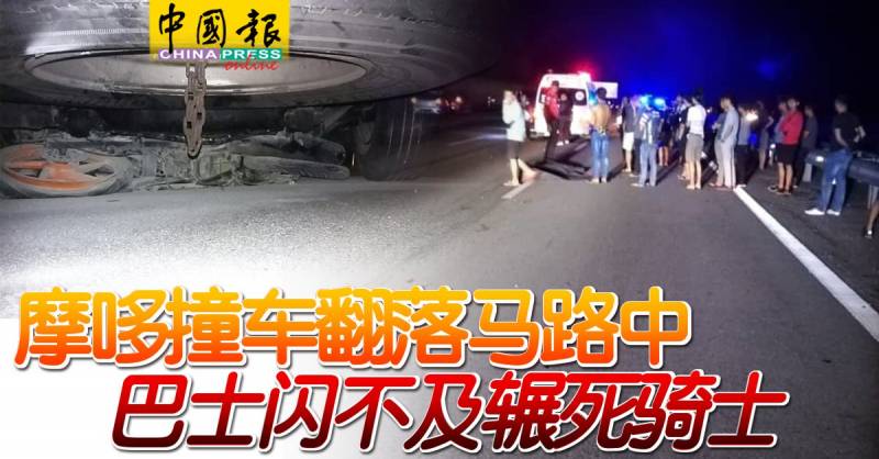 “骑士翻摩哆跌落在马路中央,被后方一辆闪避不及的巴士撞上,导致他毙命现场。”