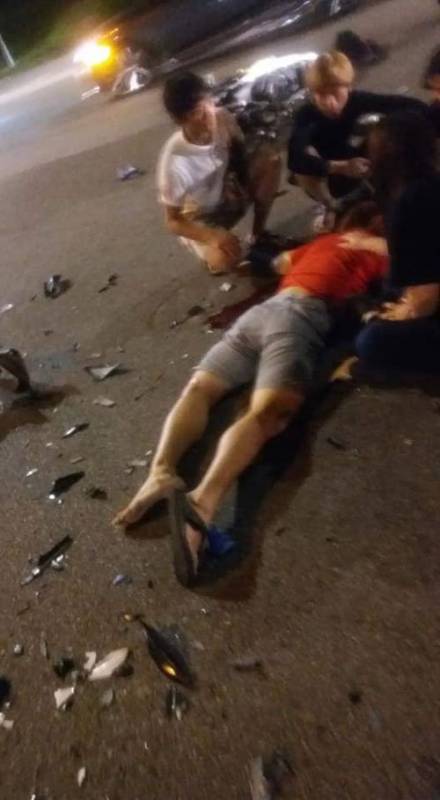 从网民分享在面子书群组上的照片显示,摩哆被撞得面目全非,热心民众在目睹车祸发生后,也到现场协助。