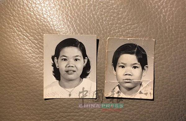 高月珍(左)与高保德(右)手持母亲童年和少女时期的照片,希望通过报章和网络力量,协助母亲陈水音找回其亲生父母。