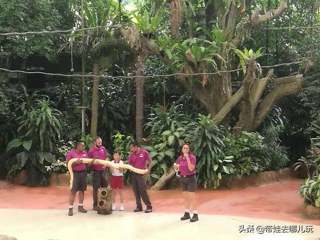 看两场演出:热带雨林演出、大象演出。大象演出结束后可以花5元新币喂大象香蕉和胡萝卜。