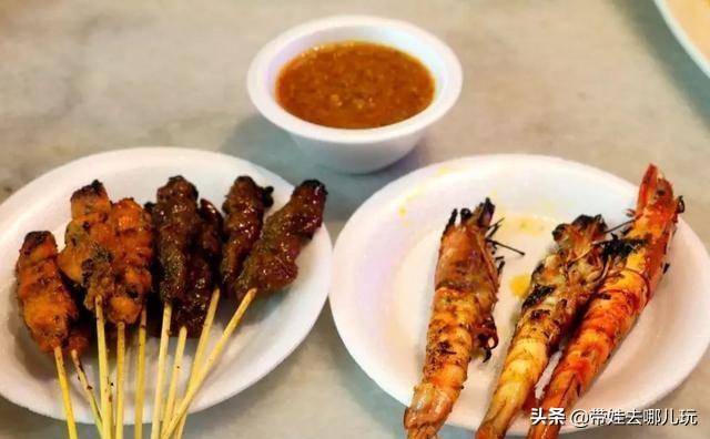 沙爹是一道马来西亚的烧烤美食。腌制好的虾、牛、羊、鸡肉用炭火烤熟,蘸上一层厚厚的沙爹酱。沙爹酱是用花生酱、椰浆及虾米混合调制而成,味道是当地特有的甜。