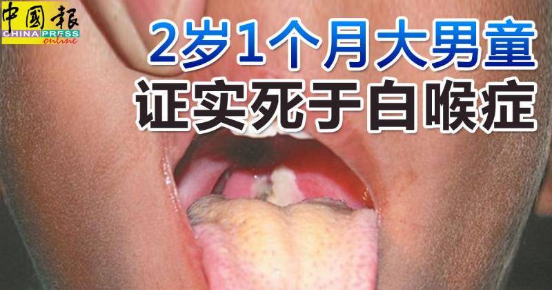 卫生部总监拿督诺希山今日发文告说,经院方检验,有关化验结果呈阳性,男童的死因证实是感染白喉症病毒。