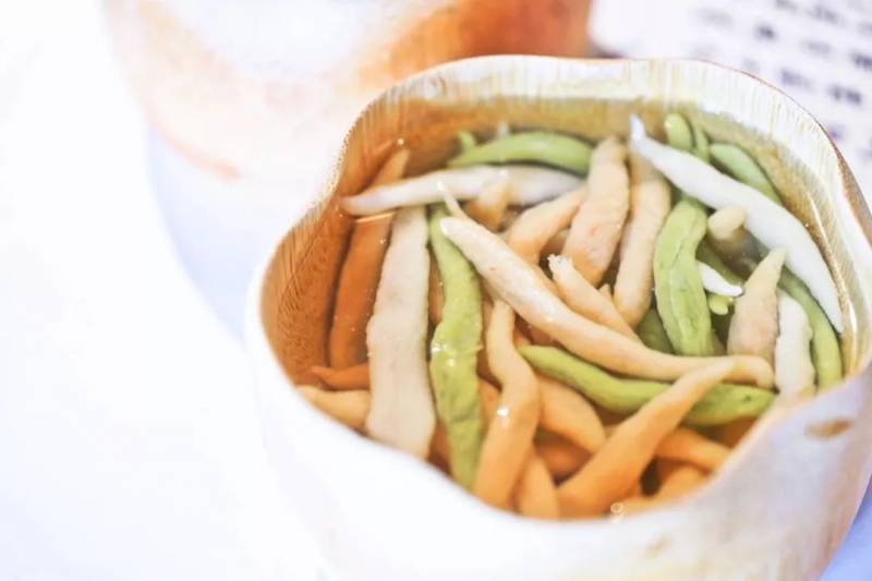 手搓鱼面也是这家店独有的菜品,而厨师更是把鱼面来了升级版,用榨取的菜汁制作成颜值更高的鱼面,配上一碗浓汤,小朋友吃饭问题轻松解决了。
