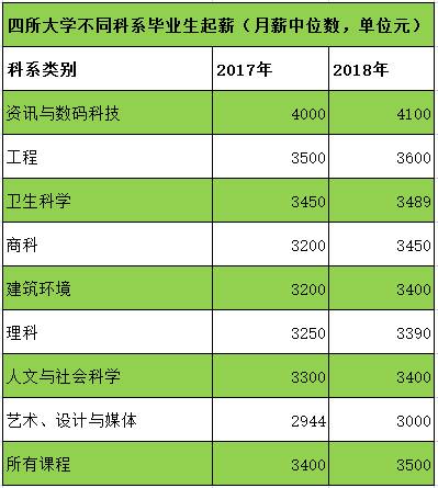 在就业薪资方面,全职就业的毕业生去年起薪中位数达3500元,比前年增加100元。
