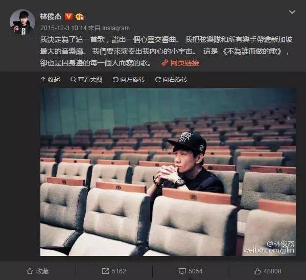 2015年8月9日,新加坡国庆50周年庆典在政府大厦草场举行。林俊杰受邀演唱国庆主题曲《Our Singapore》。站在自己国家50周年庆典上演唱着国庆主题曲《Our Singapore》,心中只有满满的骄傲!那个让你如此骄傲的新加坡,我们也为之动容!