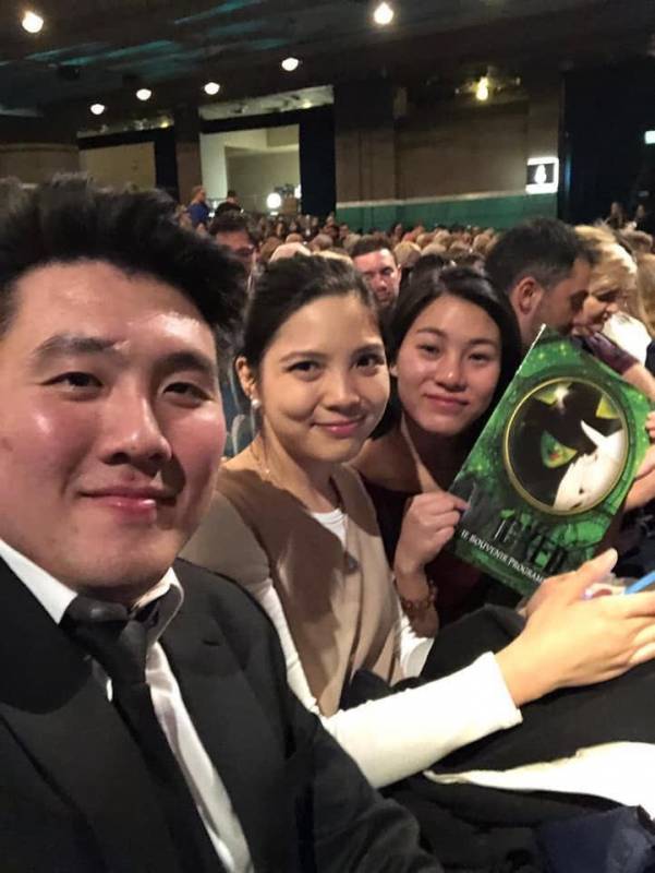 三位NUS MBA同学在阿波罗剧院观看音乐剧Wicked