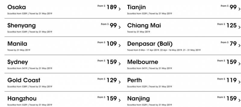 2.SCOOT周二例行促销:全球60+目的地,含税机票49新币起