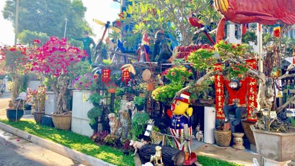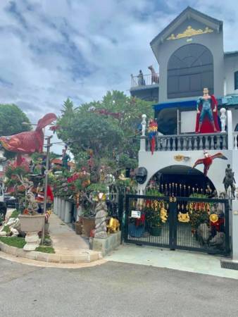 网民上载的照片显示,惹兰真巴卡古宁的有地私宅,从屋内到屋外都布满许多栩栩如生的动物雕塑,以及各式各样的盆栽,让人仿佛走入小型热带动物园。