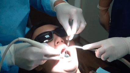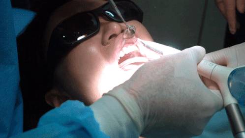 首先,洁牙师会用超声波洁牙机,全面而彻底地清洁每一颗牙齿,震荡牙结石并用水流冲走它。旁边的护士小姐姐还会拿吸唾管贴心地将口中的水吸走。