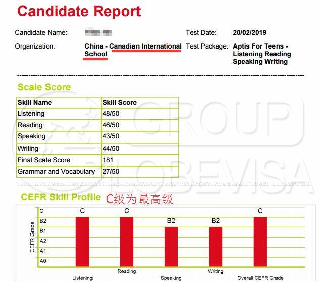不仅是UWC的offer,我们近期还收到C同学的CIS入学考试成绩:
