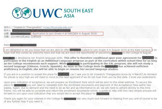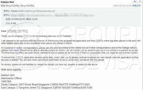 首先,小编收到了2封新加坡最难进的学校之----UWC国际学校的offer和预录取通知书。