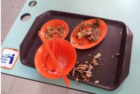 有一次,没端托盘直接把骨头吐在桌上,就被经过身边的清洁安娣念了:“以后垃圾放在托盘里,方便收啦!”说完,安娣就旁若无人端著一大摞托盘和餐具走了...