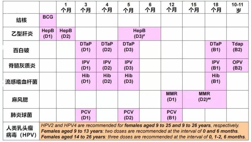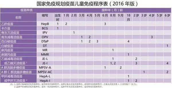 中国儿童注射疫苗表