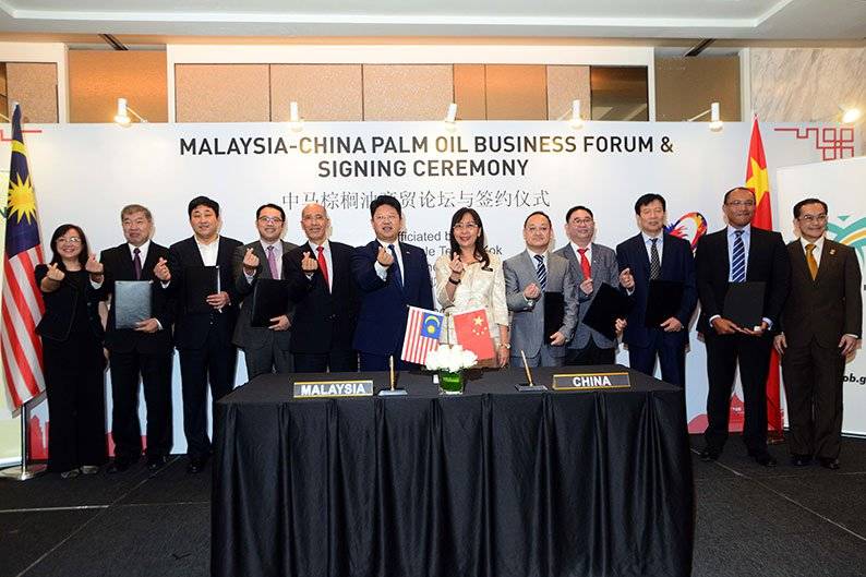 中国3家企业,即益海嘉里国际有限公司、仪征方顺工业有限公司,及烟台天贸油脂有限公司,今日分别与大马4家企业,包括森那美种植(SIMEPLT)、PGEO私人有限公司、Cacao Paramount私人有限公司,及砂油棕Edible Oils私人有限公司,签署上述购买意向合约,以购入精炼硬质和软质棕榈油。