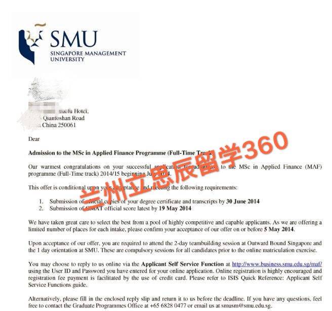 申请时学生的文书和个人陈述是和我们反复修改润色之后的精华之作,有很多独到的见解。学生将毕业论文中的论述大量的融入到了文书中。这些独到的见解和认识成功吸引了导师的注意力。让他在GPA不是很理想的状态下拿到了SMU的offer。新加坡公立院校申请难度之大众所周知。在此再次恭喜牟同学喜获offer!