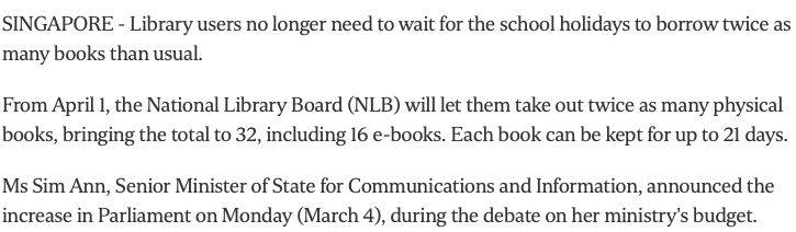 图管局已将每次可借阅的电子书从八本增加至16本,随着实体书新条例下个月生效,用户往后可借阅多达32本读物。
