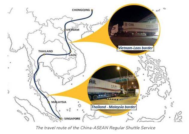重庆东盟公路班车由集团和重庆巴南区政 府以及重庆东盟国际物流一同催生。合作始于 2016年,集团企业发展兼互联互通项目总监陈 顺利接受《联合早报》访问时说,这项合作不仅是为了加强开拓两国之间的服务网络,也是响应陈顺利说,陆运有两项好处,与固定船期的海运相比,陆运可灵活应付客户运送急货的 需求;与空运相比,陆运成本更低。若比较重庆至新加坡的运送路线,陆运的成本比空运少 了六至七成。