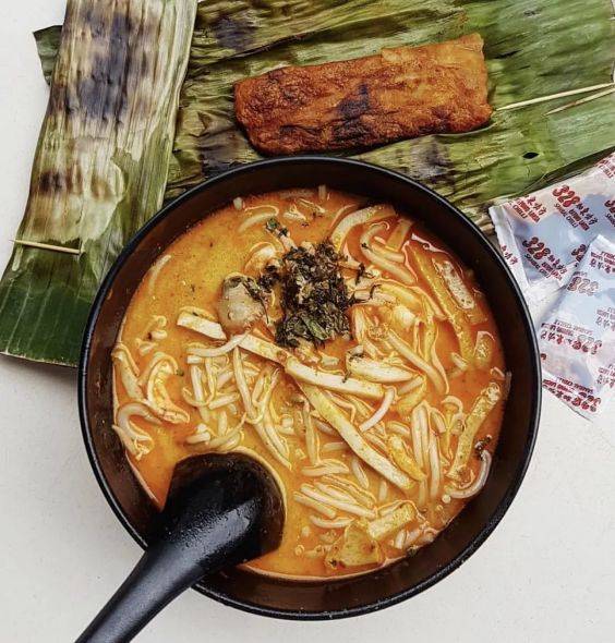 328加东叻沙是正统的加东叻沙,汤底呈橘黄色,混合了椰浆的细滑和咖喱的爽辣。