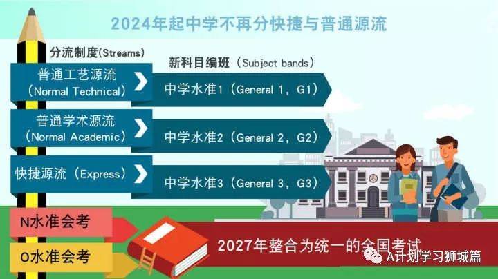 随着科目编班全面计划的推行,教育部将从2027年起,把目前的N水准和O水准会考整合为统一的全国考试。全国考试的成绩单上会列出学生所报考的科目和级别。首批受影响的是2024年入读中一的学生。