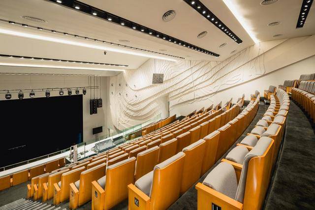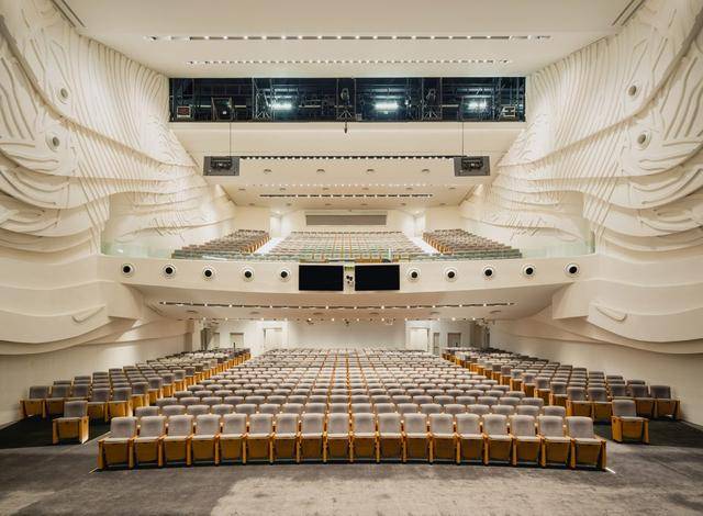 相互交叠的景观营造由上之下连成一片,缓和了枯燥单调的大体量建筑空间。此外,位于六层的户外花园,将绿色引入建筑,也将建筑与城市景观融为一体。从空间布局来说,该剧院是可以同时容纳多场演出的公共活动空间。从功能上看,配套的景观规划将建筑还原于城市之中,建筑、景观和城市在此处交融。