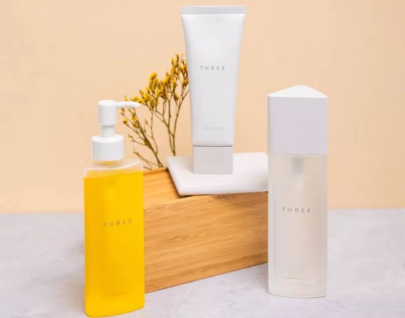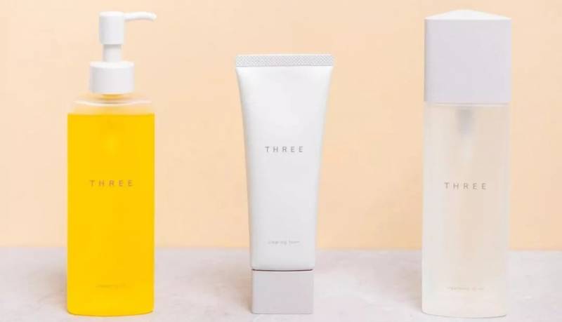 肌肤套装包括THREE Cleansing Oil(卸妆油)、THREE Cleansing Foam(洗面奶)、THREE Treatment Lotion(按摩乳液 30ml)。