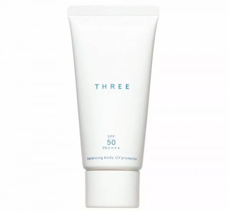 THREE Balancing UV Protector R (平衡防晒乳)、THREE Balancing Body UV Protector(平衡身体防晒乳)、THREE Purifying Clay Mask(精粹矿泥面膜 30g)。