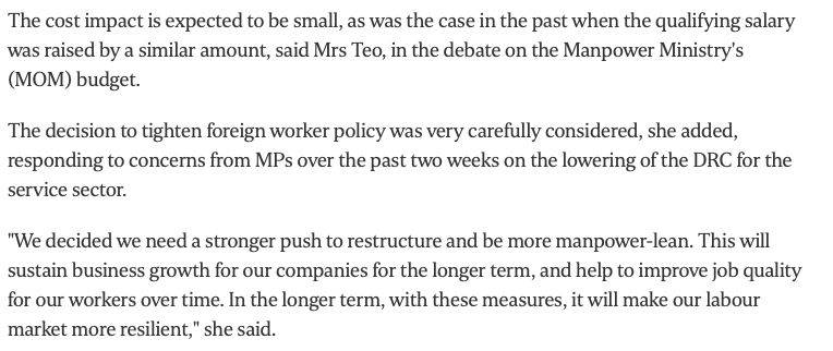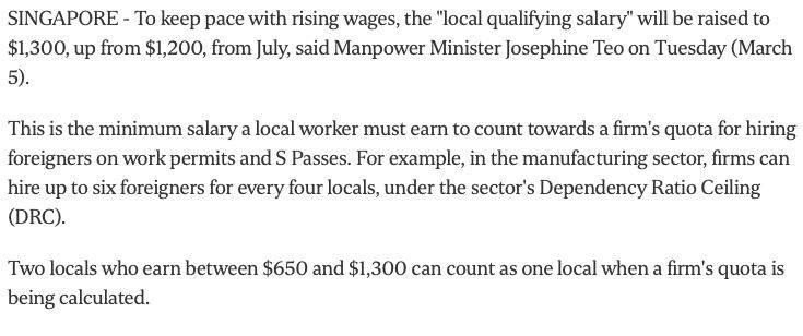 “时不时,我们会听到雇主为了符合配额要求才聘请本地人,没有给这些本地员工什么工作做……在符合配额要求上,人力部使用一个简单测试,即这份工的薪水是否超过某个水平。”