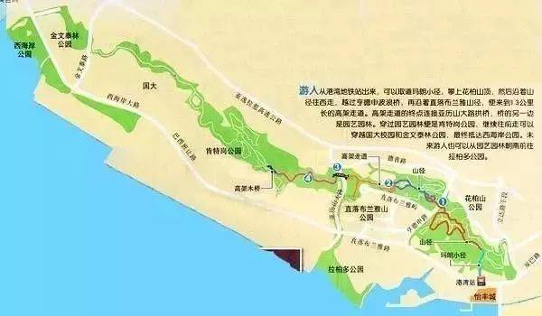 山脊徒步线路分成三个部分:亚历山大花园小径,柏莱雅溪红树小径和武吉慈明港景径。